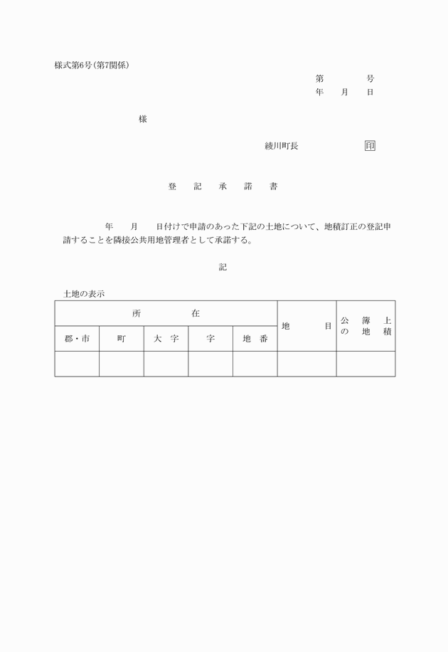 2 町長は、前項の申請が適当と認められるときは、登記承諾書(様式第6号)を交付するものとする。