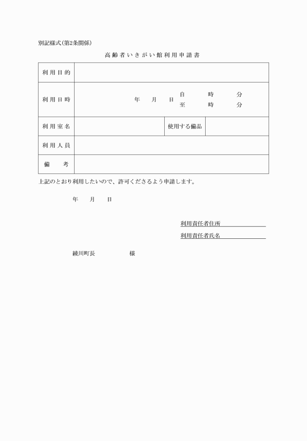 2 いきがい館の利用の承認を受けた施設、備品等以外のものは、みだりに利用してはならない。