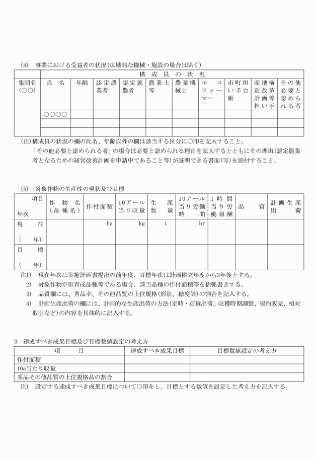 (1) 認定就農者にあっては、県の認定を受けた就農計画、農業生産法人にあっては定款又は事業計画書に定める内容と事業実施計画の内容の整合が図られており、成果目標の達成が確実と見込まれること。