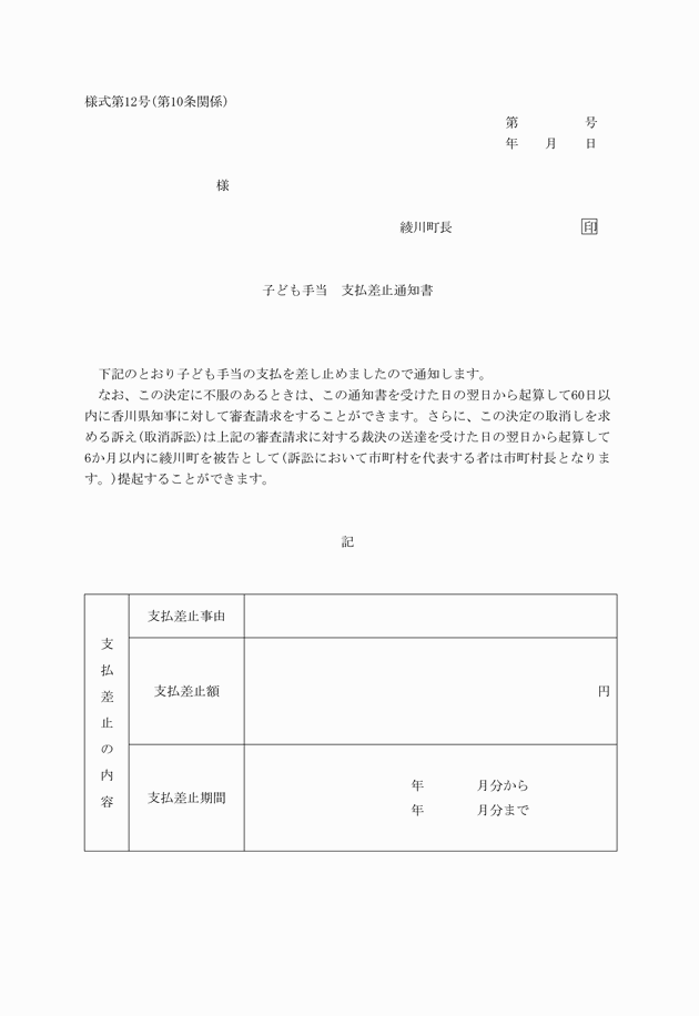 綾川町子ども手当事務処理規則(平成22年綾川町規則第16号)の全部を改正する。