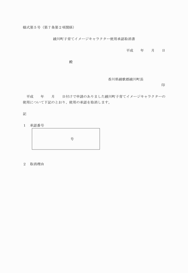 第7条 町長は、キャラクターの使用がこの規程及び承認の内容に違反していると認められるときは、当該キャラクターの使用承認を取り消すことができる。