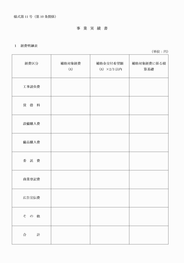 (1) 事業実績書(様式第11号)