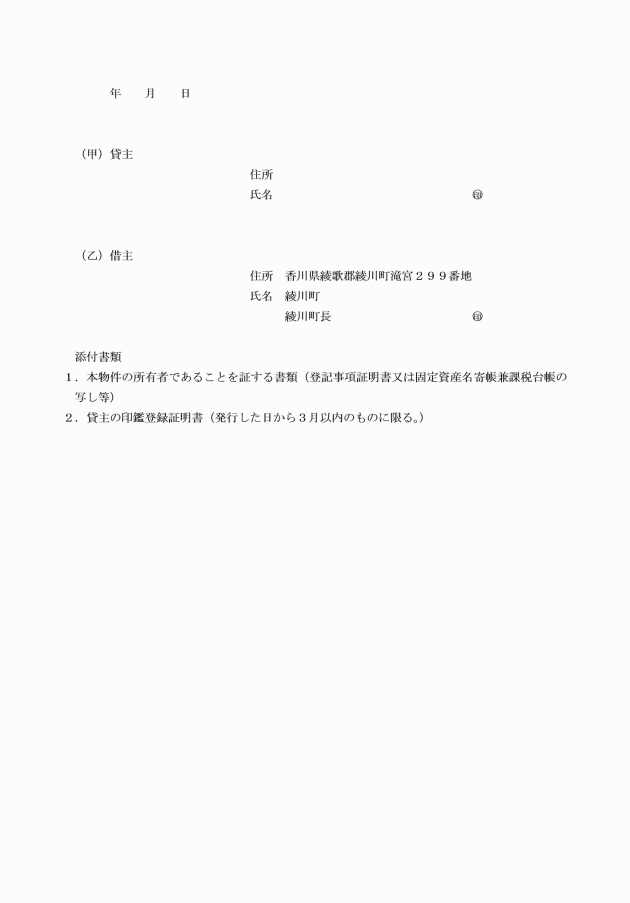 第4条 空き家を中間管理住宅として使用することを希望する所有者は、綾川町中間管理住宅申込書(様式第1号)を町長に提出しなければならない。